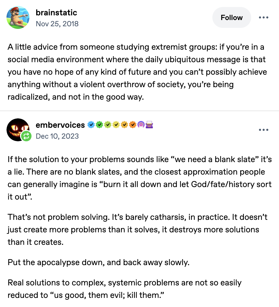 Source: https://www.tumblr.com/embervoices/736279158137683968/a-little-advice-from-someone-studying-extremist
