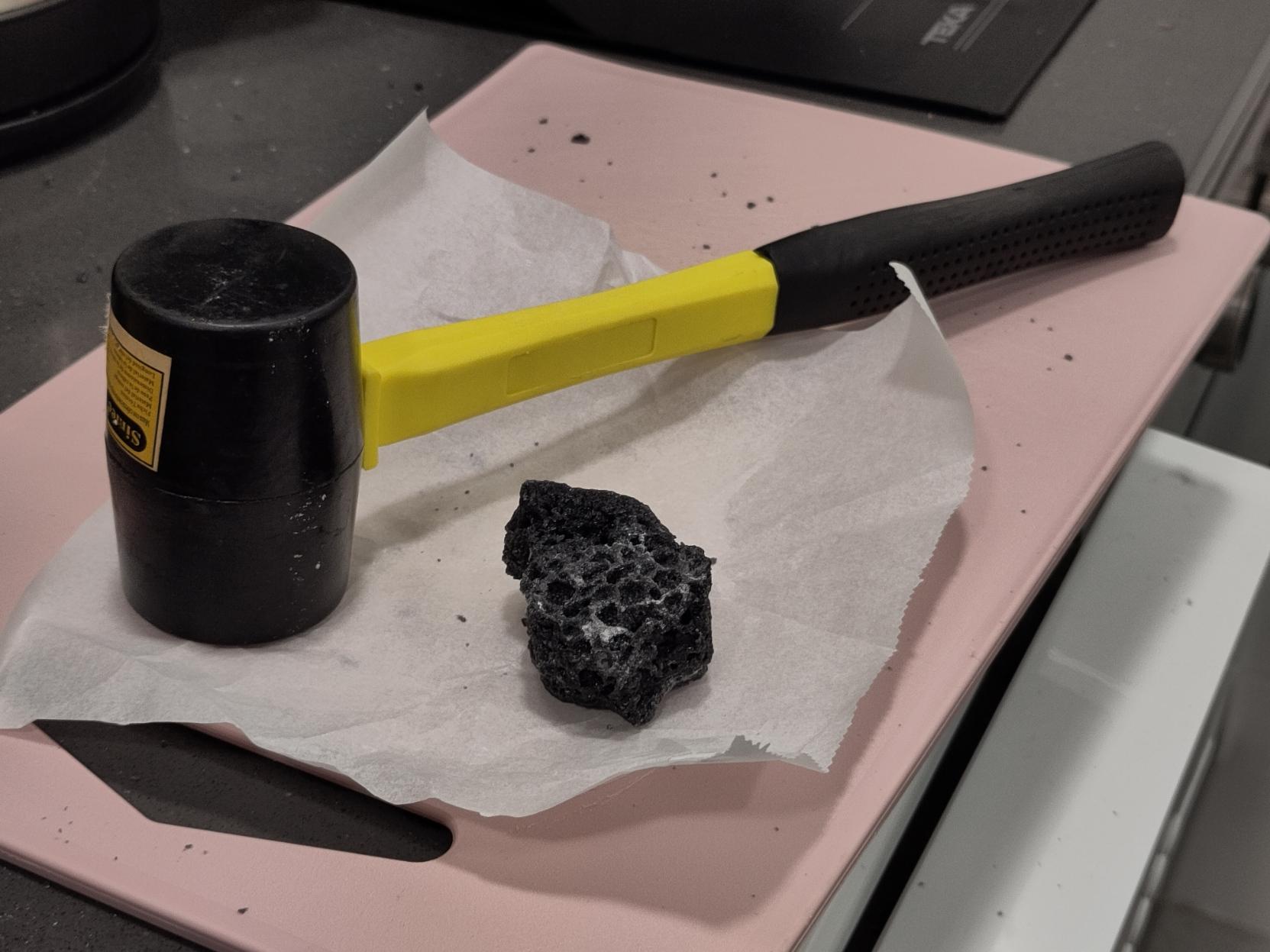 it must feel so good for the Carbón (de Reyes) to have a hammer break it in small pieces for consumption,,,,,,,,