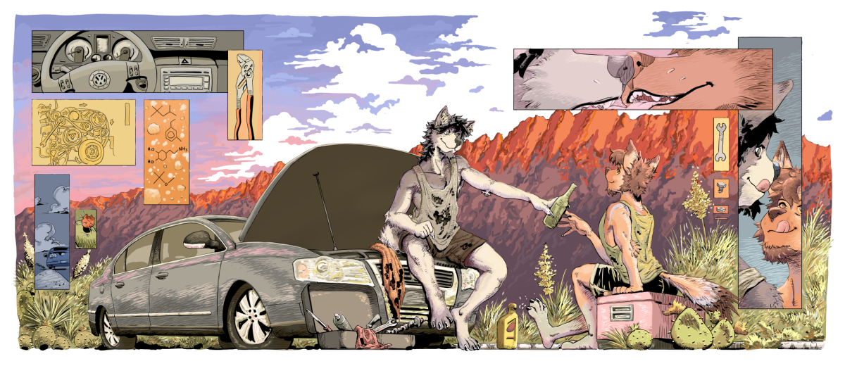 Keeping the car running Commission for @vinnycoyote.bsky.social and @werewusky.bsky.social !