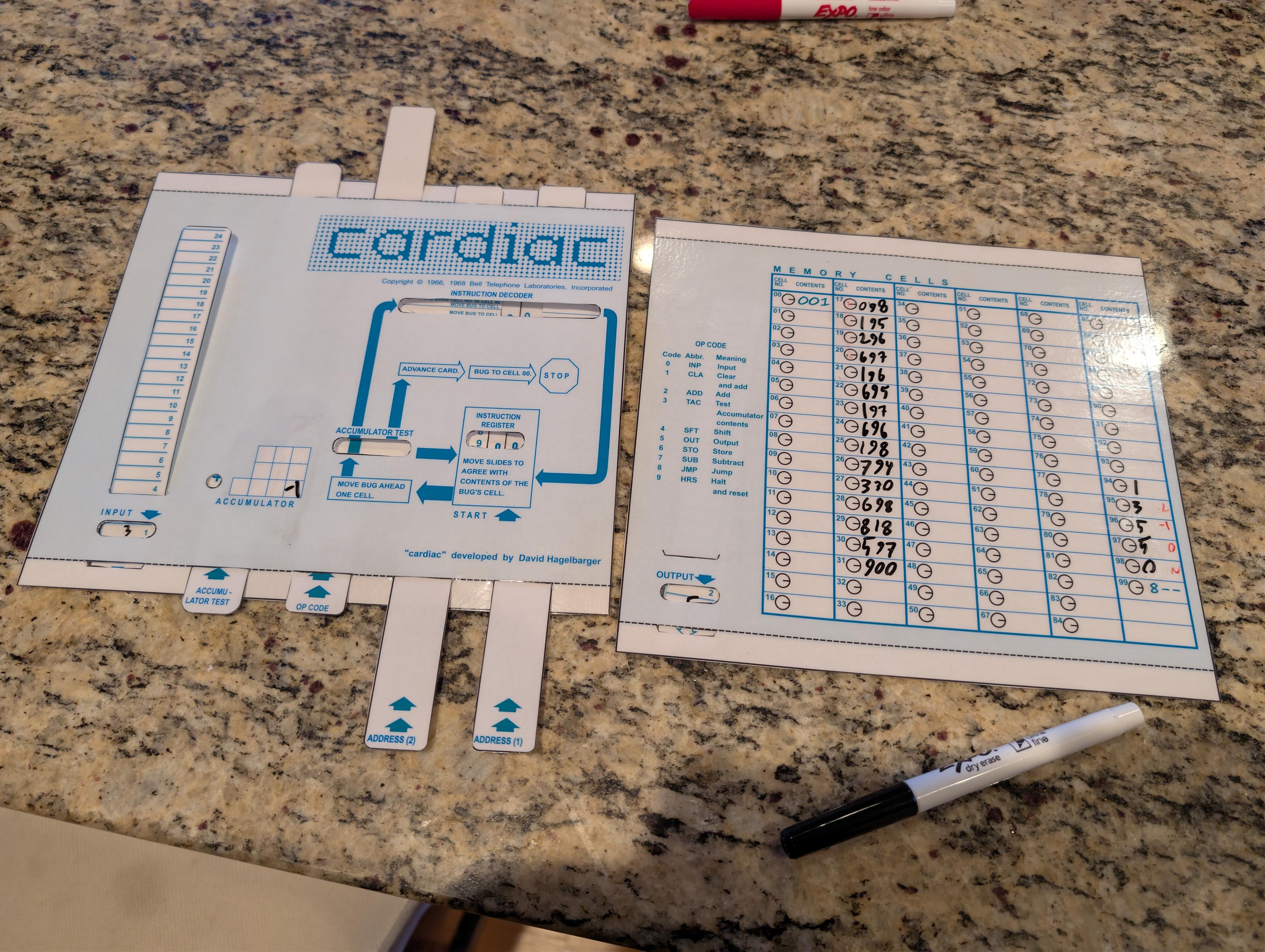 This afternoon I'm playing around with a paper computer learning tool from the 60s. My (iterative) Fibonacci program works!
