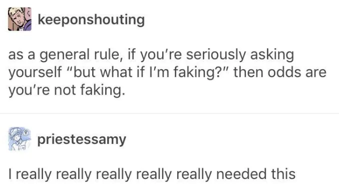 This definitely helped my day already. Goes double for being nonbinary trans and median plural with aphantasia that cloaks both.