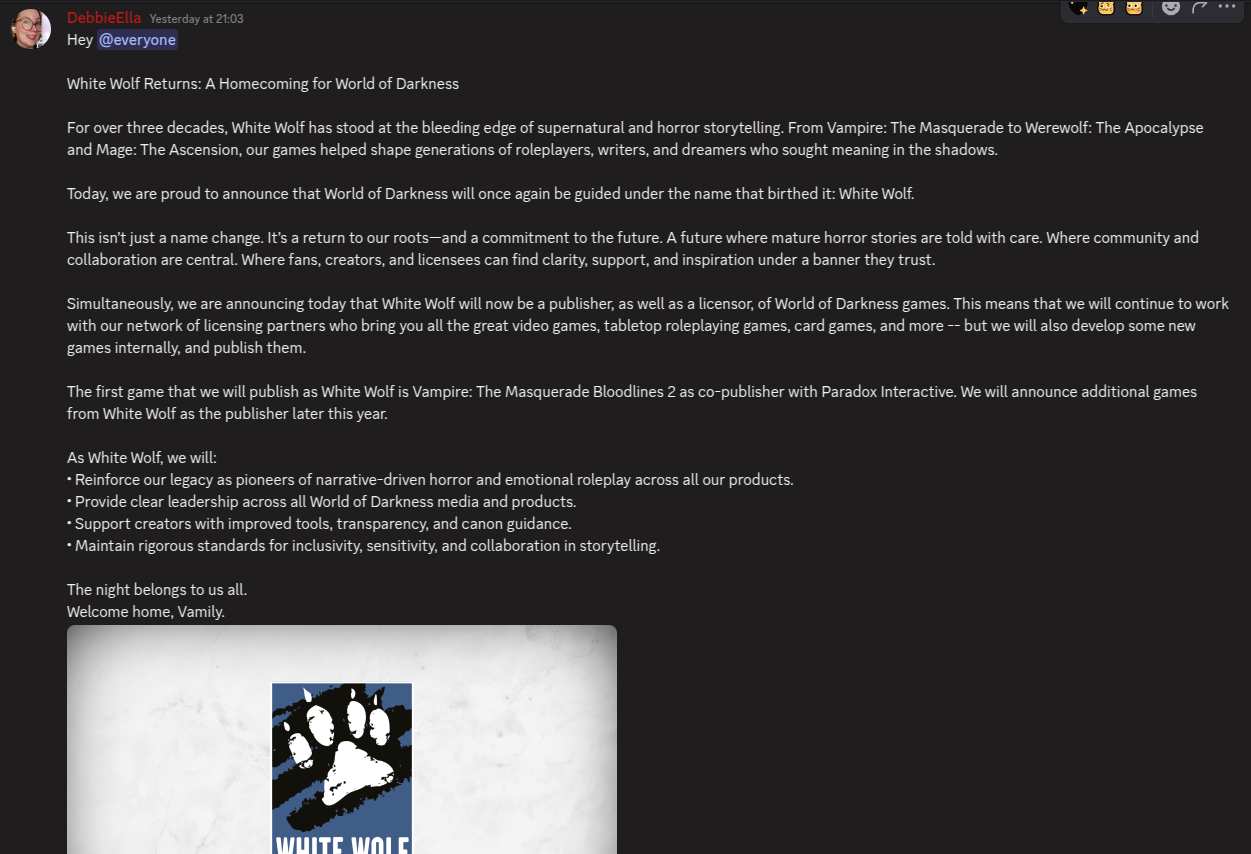 world of darkness changing hands again