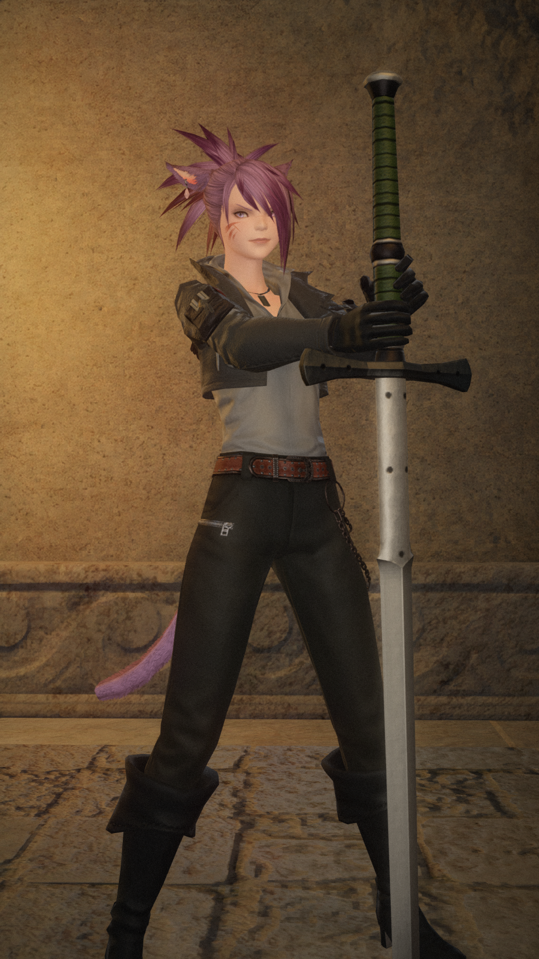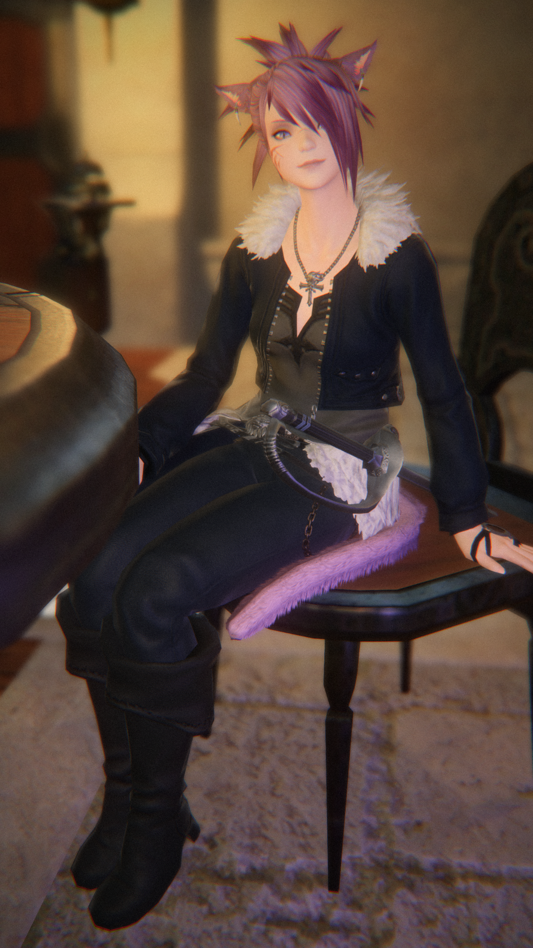 since posting one's ffxiv character seems to be going around our circles, here are the glamours we have for some of us who play (digitally simulated eye contact in pics)
