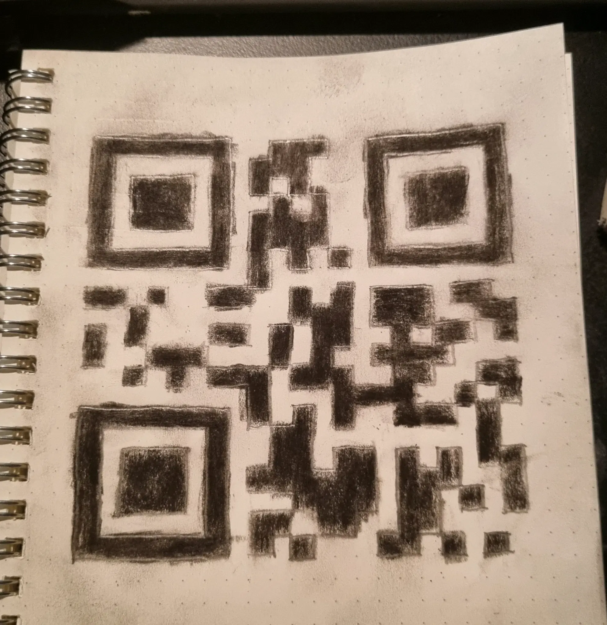 I wanted to know if I could draw a working QR code by hand (with a little help from a dot grid) and have learned that it takes a while but it is certainly possible