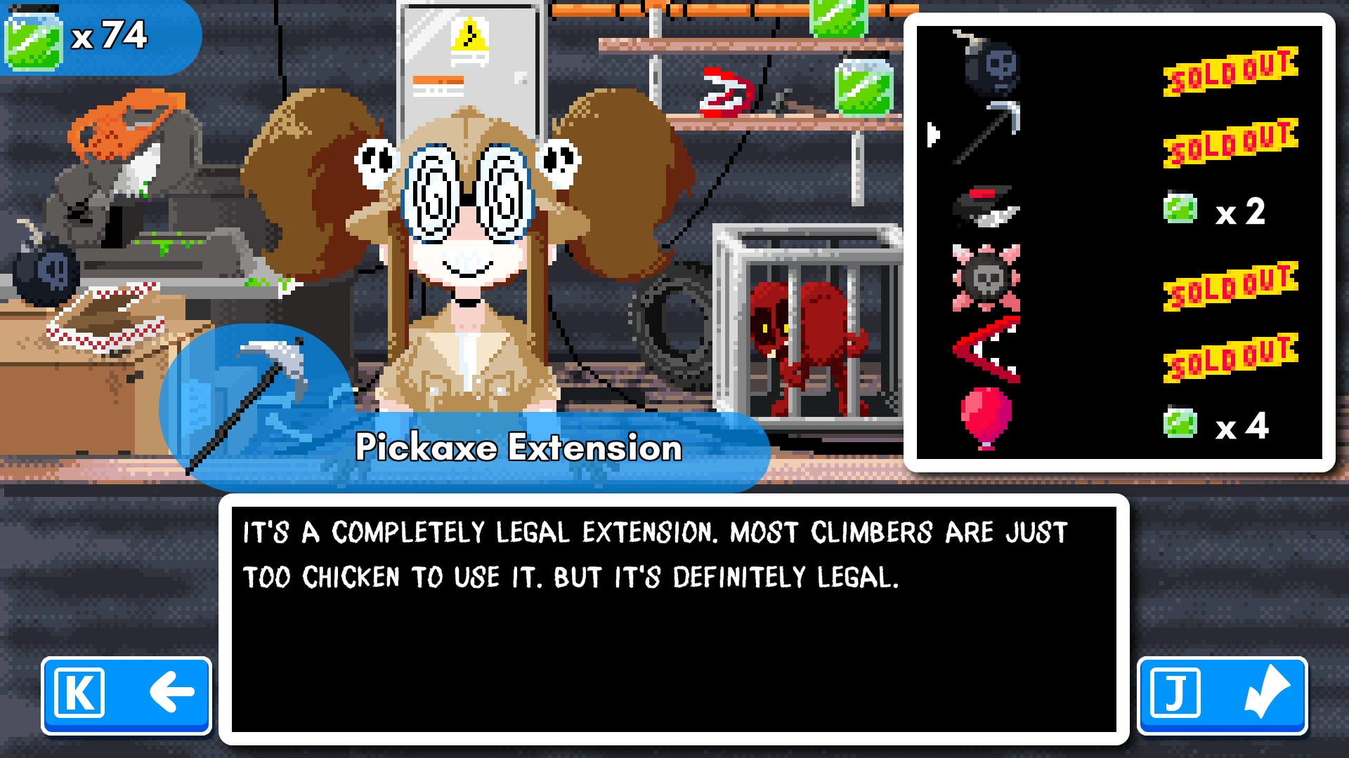 the post game items in Super Climb Up!! are all completely above board, nothing shady at all about the place you buy them from or the lovely shopkeeper who sells them to you, right?